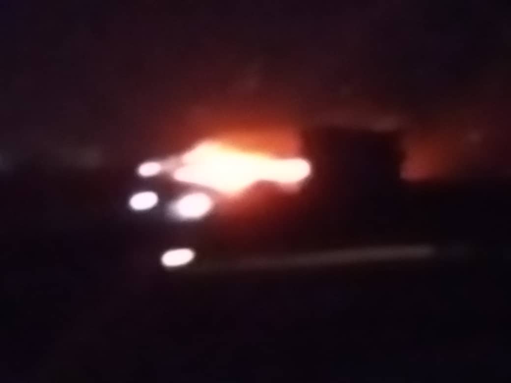قال شهود عيان بأن النيران لازالت مشتعلة حتى اللحظة بعد سقوط صاروخ  على احدى مخازن الامداد.