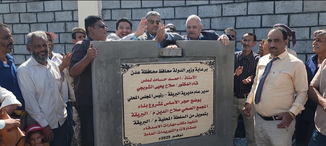 وخلال وضع حجر الأساس بحضور مدير عام مكتب الصحة العامة والسكان بالعاصمة الدكتور أحمد مثنى البيشي نوه نائب محافظ العاصمة عدن، بدر معاون بجهود قيادة السلطة المحلية بمديرية البريقة في التوجه لإنشاء مجمع صحي بمنطقة صلاح الدين بعد سنوات طويلة من الحرمان لمثل تلك المشاريع الخدمية معتبراً بناء هذا المشروع الهام رصيد إضافي لمديرية البريقة وقيادتها وثمرة للإرادة الجادة.