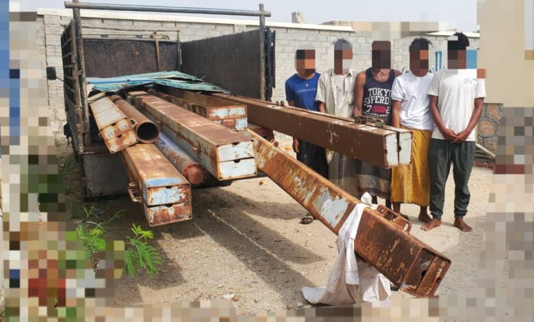 تمكنت الأجهزة الأمنية بمديرية غيل باوزير، من القبض على عصابة مكونة من خمسة أفراد وهم (خ.م) البالغ من العمر 45 عاماً، (أ. ش) البالغ من العمر 38عام، (س.ي)البالغ من 25 عام، (م.أ) البالغ من العمر 21 عام، (ح. د) البالغ من العمر 19 عام، متهمين بسرقة معدات نفطية قديمة من موقع شركة شلمبرجير بالقرب من ميناء الضبة النفطي، تقدر قيمتها بحوالي 200 ألف دولار.