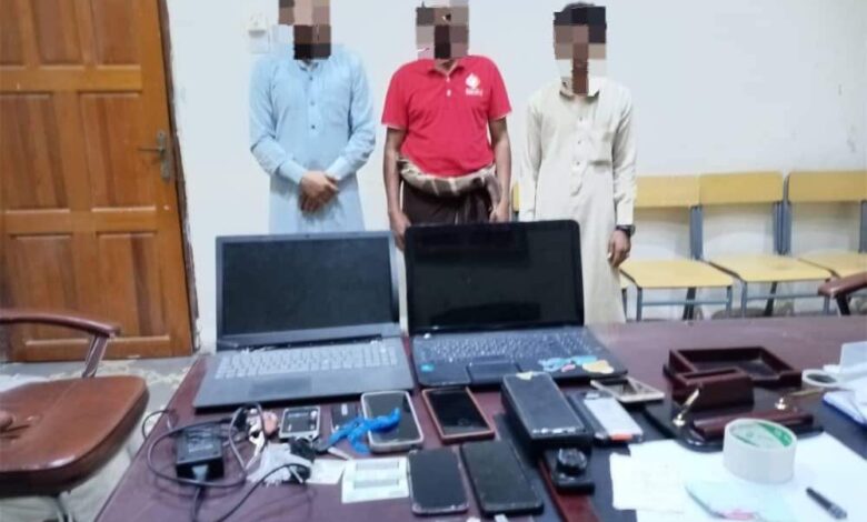 وأضاف المصدر “أنه بعد بحث وتحري دقيق دام أيام تم ضبط العصابة مكونه من أربعة اشخاص وإمراة يمتهنون عمليات الاختراق الكتروني وتم التنسيق مع النيابه العامه لتفتيش المنزل الذي يسكنونه وتم ضبطهم .