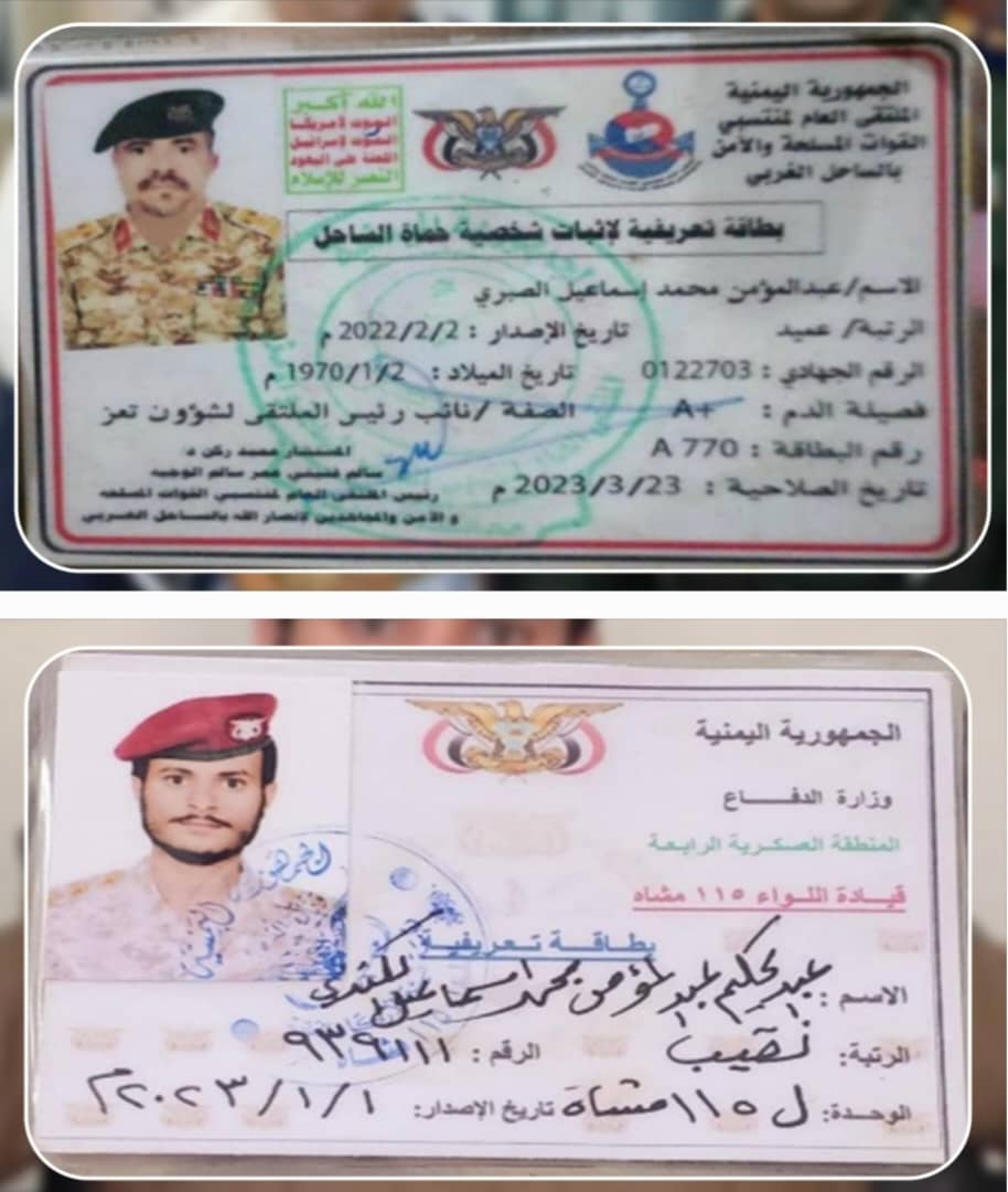 والعنصرين هما القيادي الحوثي ( عبد المؤمن محمد إسماعيل) الذي ينتحل رتبة عميد، تم تعيينه من قِبل الحوثيين بصفة وكيل محافظة تعز الخاضعة لسيطرة المليشيا
