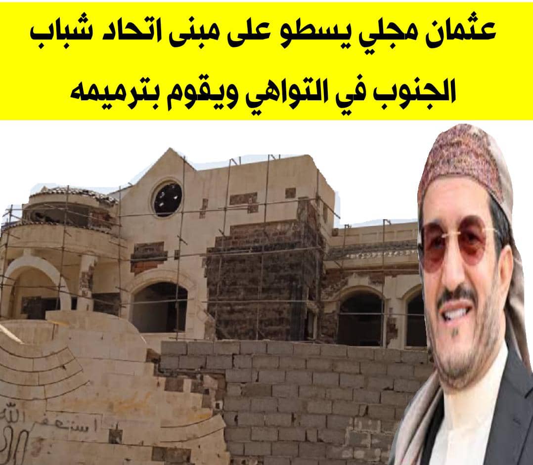 نشطاء جنوبيين يطالبون القيادي الاخواني والمؤتمري المزدوج (عثمان مجلي) تسليم مبنى اتحاد شباب الجنوب بعد البسط عليه
