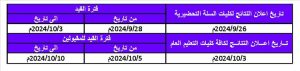 تاريخ إعلان النتائج وفترة القيد للمقبولين: