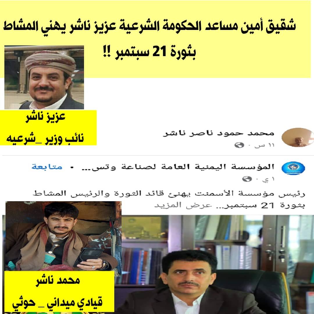 الحرب مطولة.. شقيق مساعد الحكومة الشرعية (عزيز ناشر) يهنى (المشاط) بمناسبة ثورة ( 21) سبتمبر الملكية