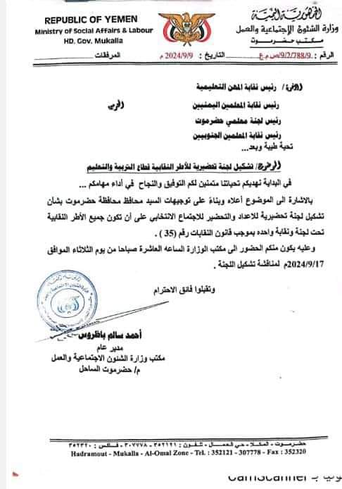 وتسعى بعض الأطراف المدعومة من اخوان اليمن للسيطرة على نقابة المهن التعليمية والتربوية بمحافظة حضرموت لتسخيرها في التحكم بقطاع التعليم الكبير والمهم وفق اهدافها الخاصة