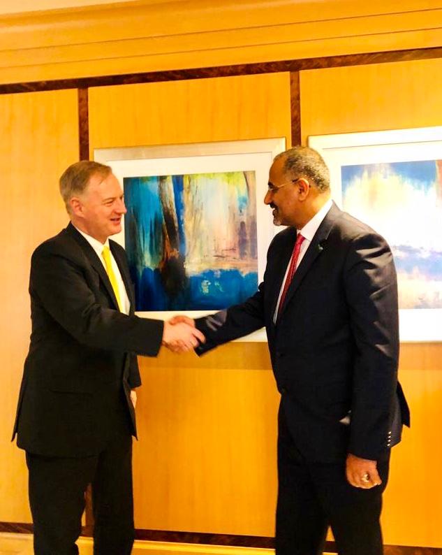 وبحث اللقاء سُبل التنسيق والتعاون المشترك بين الولايات المتحدة الأمريكية والمجلس الإنتقالي الجنوبي بما يعزز من فرص السلام وتنفيذ اتفاق الرياض، حيث أكد السفير اهتمام الولايات المتحدة بكافة الملفات ذات الصلة، خاصة فيما يتعلق بالأمن وحماية خطوط الملاحة البحرية ومكافحة الإرهاب.