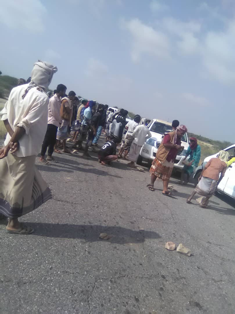 وافادت المصادر بإن جموع الجنود المحتجين اتجهوا بعد هذه التظاهرة الكبرى من داخل ساحة المعسكر الى الخط الدولي العام الذي يربط محافظة عدن بشبوة، وجاب الجنود الغاضبون في مسيرة راجلة مسافة طويلة من هذا الطريق ذهاباً وإياباً قبل ان يضرموا النار ويشعلوا الإطارات فيه.