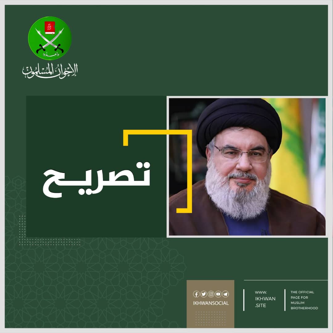 في بيان يكشف التخادم الأخواني الإيراني تنظيم الأخوان يدين مقتل نصر الله وقصف مواقعه في لبنان
