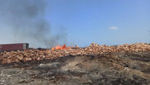 تمت عملية الإتلاف في مقلب المنطقة الحرة عن طريق إضرام النار فيها.