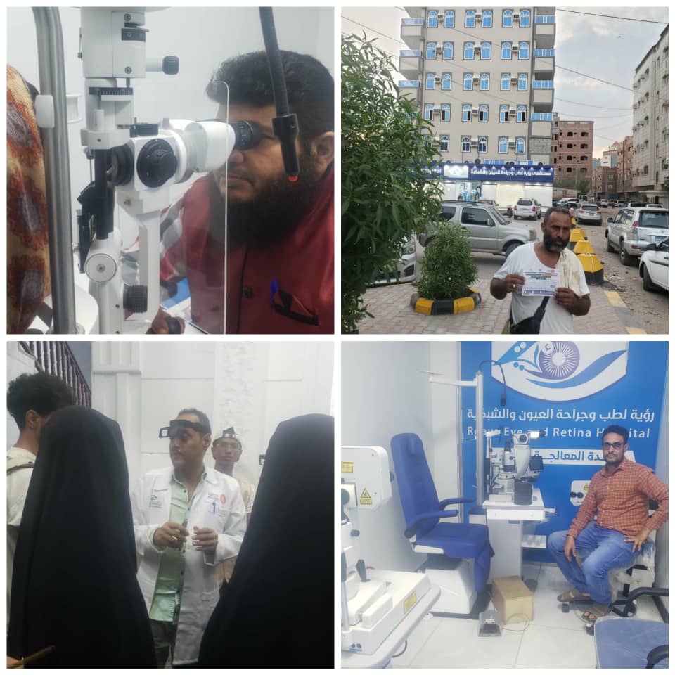 مشيرا: الحمد لله تم افتتاح مستشفى رؤية للعيون في عدن ولمزودة باحدث الاجهزة الطبية المتطورة المتخصصة في مجال العيون منها العصب البصري، وبذلك فان كادرها الطبي مؤهل وذو خبرة كبيرة جدا الخاصة في اجراء العمليات الكبرى كعمليات الشبكية، وعمليات السائل الزجاجي وباشراف استشاري العيون الدكتور ( عدنان)، ضف الى زراعة القرنية عبر متعاقدون وبحضور اطباء مصريين متخصصين في هذا الجانب اي جانب زراعة القرنية، كما ان المشفى تقوم باجراء الجراحات التجميلية، وجراحة تصحيح الحول، وعمليات ازالة المياه البيضاء، عبر خدمة الفاكو.