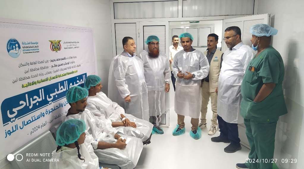 دشن الاستاذ/ مهدي الحامد أمين عام المجلس المحلي في محافظة أبين والدكتور محمد الشعيبي نائب مدير عام الخدمات الطبية في وزارة الصحة والسكان يوم الأحد 27 أكتوبر المخيم الطبي الجراحي المجاني لجراحة الأنف والأذن والحنجرة واستئصال اللوز الذي يقام برعاية الدكتور قاسم بحيبح وزير الصحة العامة والسكان واللواء الركن أبو بكر حسين محافظ محافظة أبين والذي تنفست مؤسسة استجابة للأعمال الإنسانية.