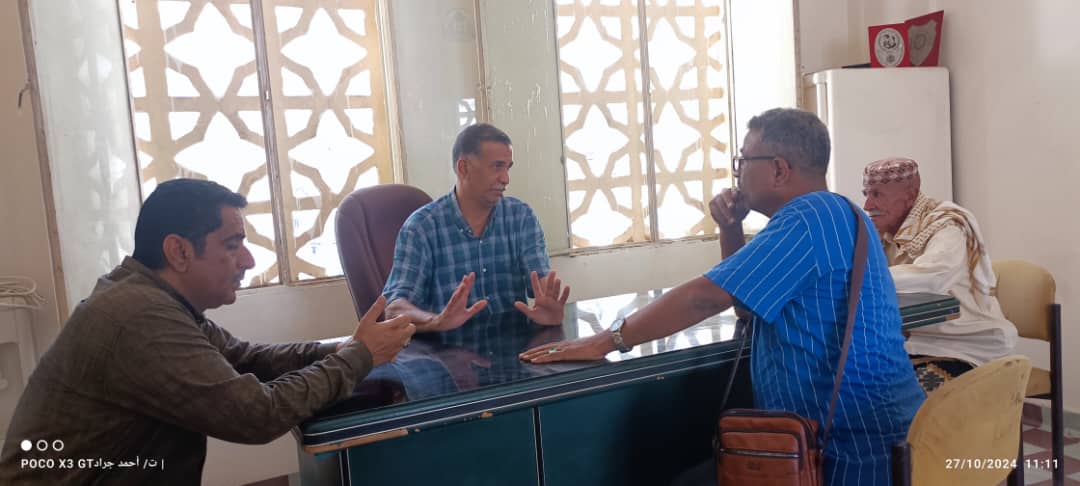 التقى الأستاذ سامي خيران رئيس الاتحاد العام لنقابات عمال الجنوب بمكتبه بمقر الاتحاد بالمعلا صباح اليوم الأحد 27 أكتوبر 2024م الأخ أديب فضل محسن رئيس منسقية منظمات المجتمع المدني في العاصمة عدن.