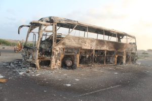 تعرض باص نقل جماعي تابع لشركة النجار للحريق اليوم الاثنين وعلى متنه 31 راكب والذي انطلق من العاصمة الجنوبية عدن، وفي طريقه إلى مدينة الرياض المملكة العربية السعودية