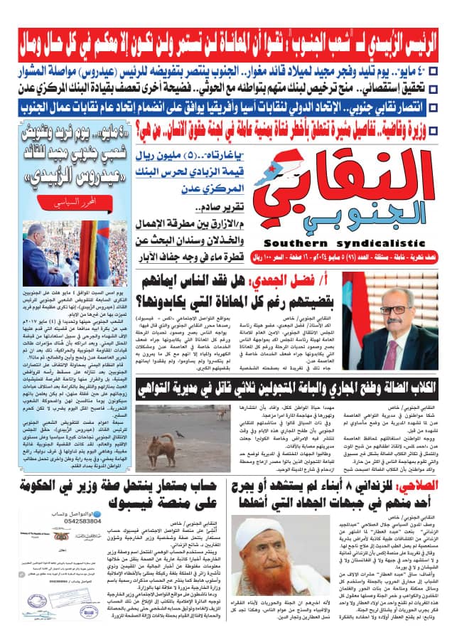 النقابي الجنوبي تنفرد في عددها الجديد (95).. احداث ساخنة وملفات جريئة ومنه يتم محاكمة الفساد