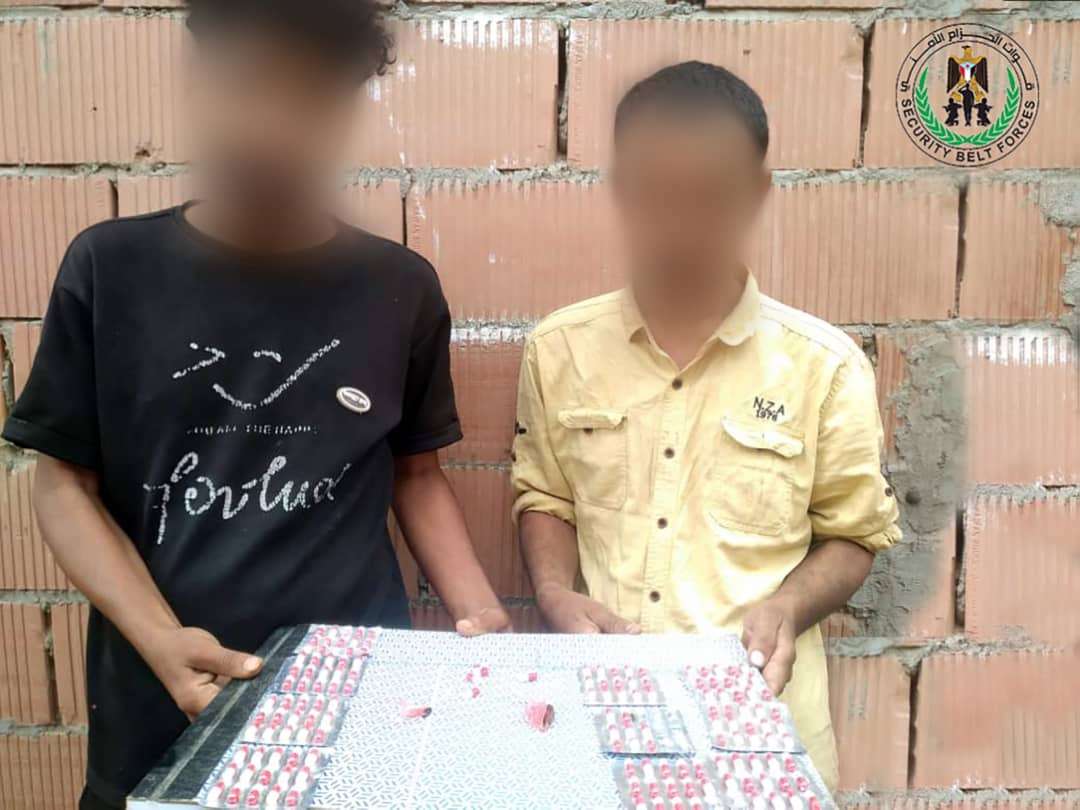حزام لحج يوقف شخصين بحوزتهما أشرطة حبوب مخدرة