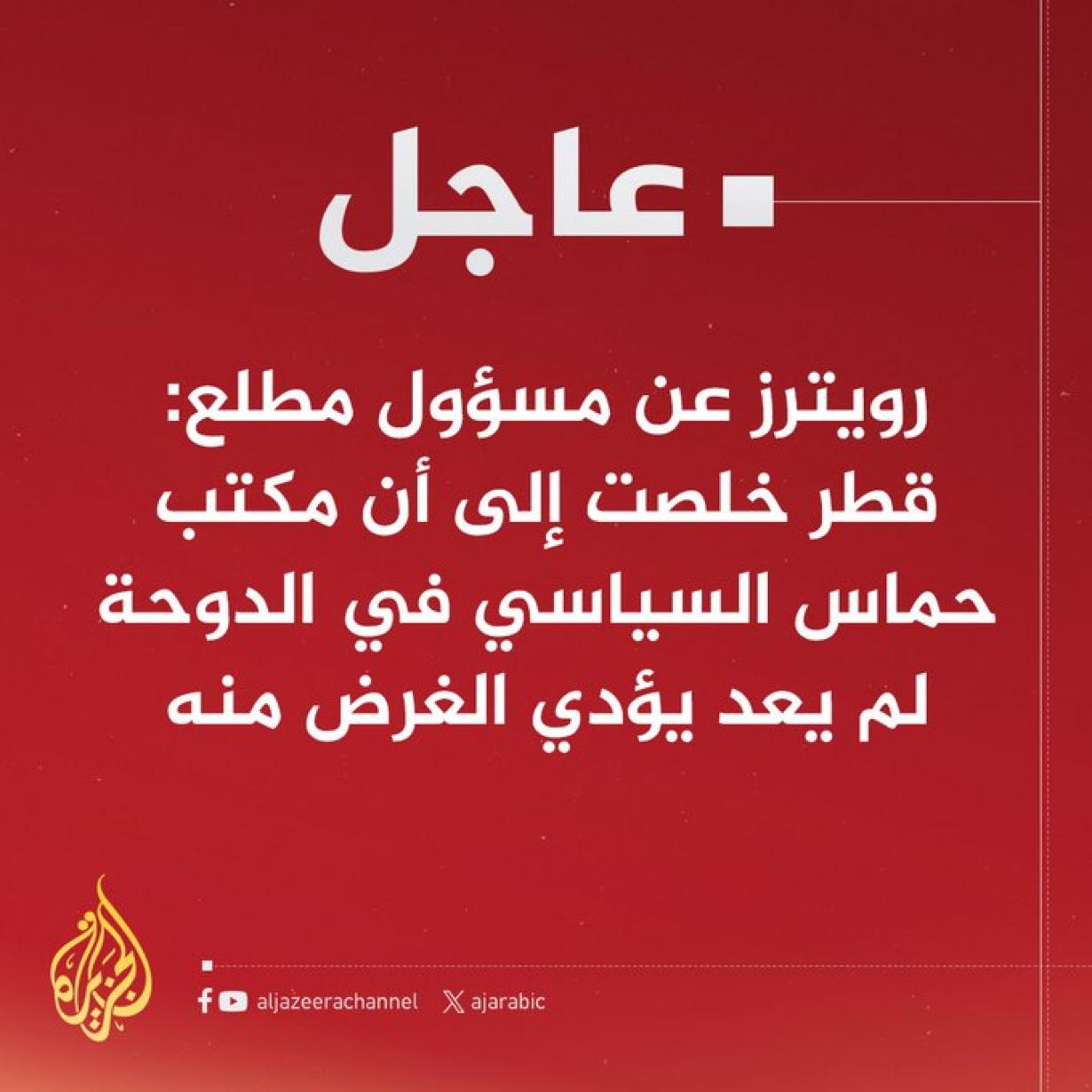 قالت مصادر أمريكية وقطرية، لشبكة CNN، إن قطر وافقت في الأسابيع الأخيرة على طرد حركة حماس من أراضيها بناء على طلب من الولايات المتحدة للقيام بذلك، لتتوج بذلك شهورا من التفاهمات مع قطر لغلق مكاتب الحركة التي يقيم كبار قادتها في العاصمة القطرية الدوحة بقبول وقف إطلاق النار والإفراج عن الرهائن الإسرائليون الذين تحتجزهم في غزة.
