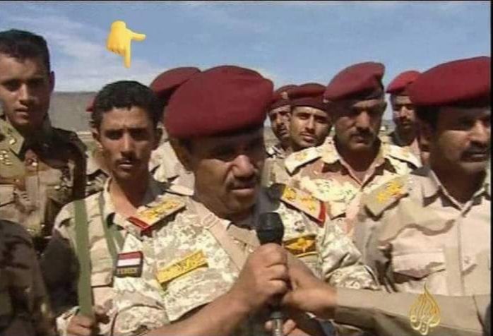 وقالت المصادر إن قائد العسكرية الأولى يومئ إلى أفراده بشحنهم أن هذه أراضي يمنية سندافع عنها مهما قدمنا ولن نفرط أو نسلم المنطقة أو شبر من مواقعنا للسعوديه او غيرها.