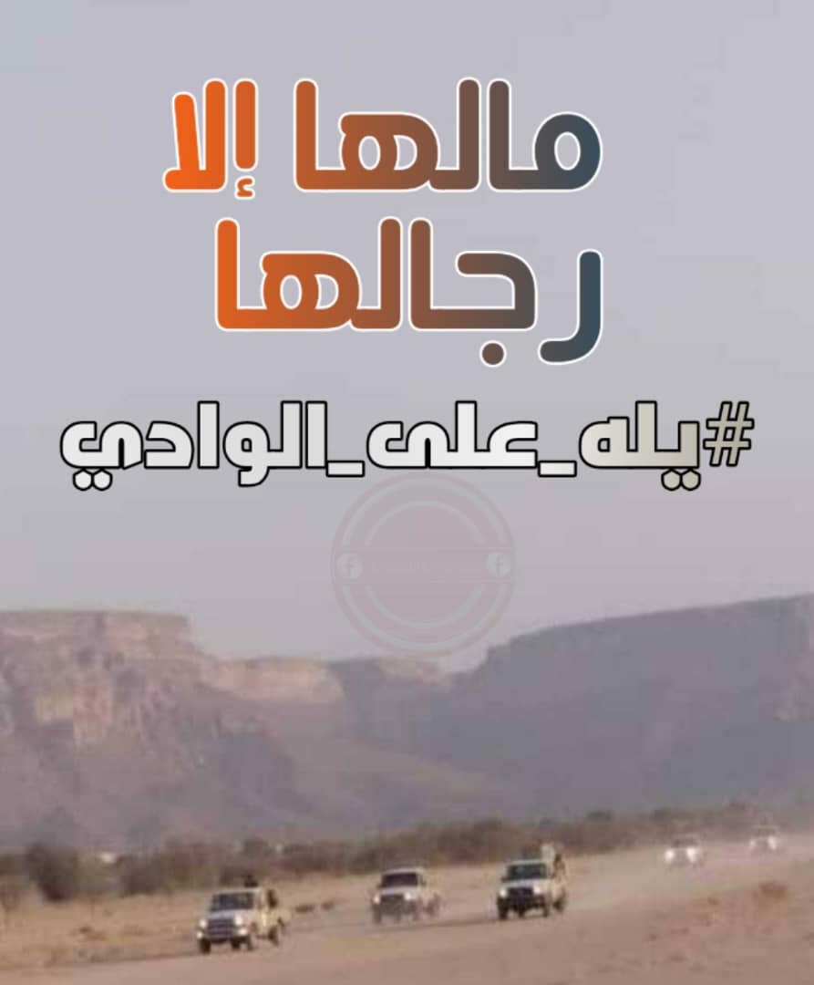 اطلق نشطاء جنوبيين حضارم هاشتاج تحت عنوان #يله_على_الوادي،اذ تضمن تكذيب خبر انسحاب جنود من مليشيات الاحتلال اليمني من وادي حضرموت الى مارب اليمنية