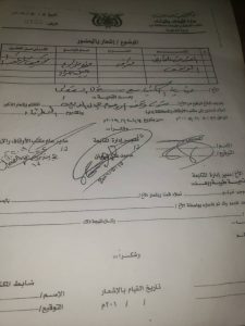 ولكي نسقط الحجة امام الله والناس قمنا بتقديم شكوي ثانيه إلى رئيس هيئة الاوقاف مرفق لكم صوره منها ادنا هذا وتم تحويلها من قبل مدير مكتب رئيس الهية في صنعاء إلى الوكيل لقطاع الاعيان ( جحاف ) الذي تعامل معها كاسبقتها من الشكاوي بعنجهية وغرور ومماطلة ومستقوينا في طقوم ومال الدوله التي نهبها من أموالي وغيري من المستضعفين في الارض