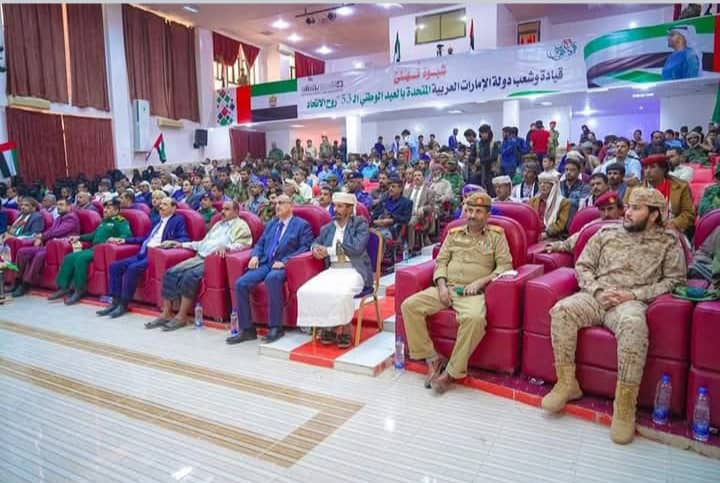 اقيم بمركز يسلم بن علي الثقافي بمدينة عتق محافظة شبوة احتفالية بمناسبة العيد الثالث والخمسين لإعلان اتحاد الإمارات العربية المتحدة، وذلك تقديرًا وعرفانًا بالدور الكبير للاشقاء في دولة الإمارات الشقيقة ولما قدمته من دعم ومساندة في مختلف المجالات في محافظة شبوة بوجه خاص والجنوب بشكل عام.