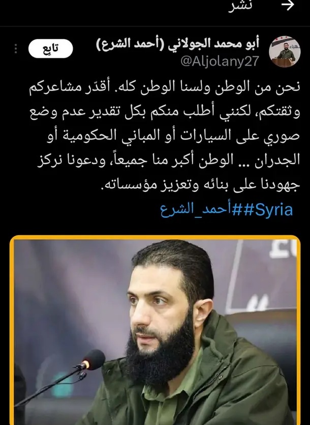 لو أراد أن يدخل التاريخ كأول قائد عربي في القرن <21> عليه ان يعمل لتأسيس دستور سوري مدني يحفظ حقوق السوريين بكل طوائفهم ونظام جمهوري ديمقراطي و قضاء مستقل ثم بعد هذا يعتزل السياسة