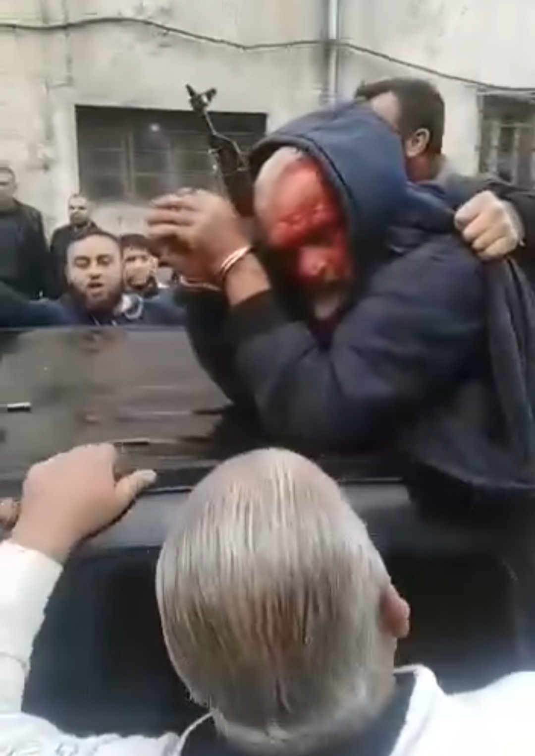 وفي مقطع فيديو ظهر مخلوف مدير السجن وهو مكبل الايادي بينما القوات الموالية لسلطة دمشق تضربه باعقاب البنادق