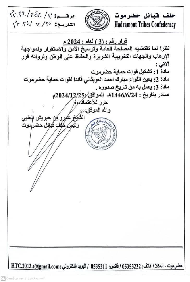 تلقى الشارع في محافظة حضرموت قرار رئيس مايسمي نفسه رئيس حلف قبائل حضرموت عمرو بن حبريش بشأن تشكيل مليشيات خاصة به تحت اسم ” قوات حماية حضرموت ” لحمايتها من الإرهاب والقوى الشريرة في إشارة إلى قوات النخبة والتحالف العربي بنوع من الفكاهة والسخرية قائلين إن الرجل ومن حوله يملكون خيال واسع ويغرقون في الأوهام .
