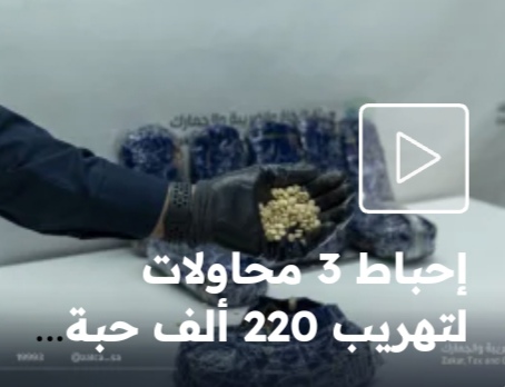 تمكنت هيئة “الزكاة والضريبة والجمارك” في منافذ جسر الملك فهد والحديثة وميناء ضباء من إحباط 3 محاولات لتهريب أكثر من 220 ألف حبة محظورة، عُثر عليها مخبأة في مركبات قَدِمت إلى المملكة وحقيبة ملابس لأحد المسافرين.