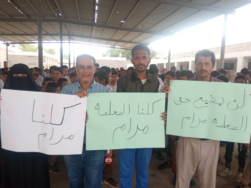 استجابة لبيان نقابة المعلمين والتربويين الجنوبيين مدارس عدن تنفذ اضراب جزئي ووقفة احتجاجية لمساندة الاستاذة “مرام”