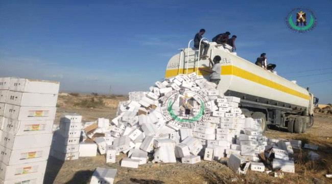 تمكنت قوات الحزام الأمني في نقطة العر المركزية بيافع من ضبط كميات كبيرة من الأدوية والمبيدات السامة، كانت مخبأة بطريقة محكمة داخل صهريج مخصص لنقل الزيت الخام.