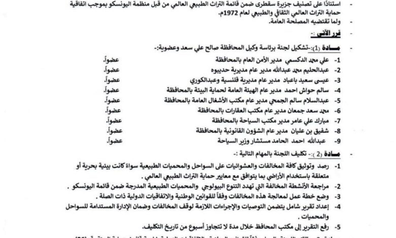 محافظ محافظة سقطرى يصدر قرارين، تعرف