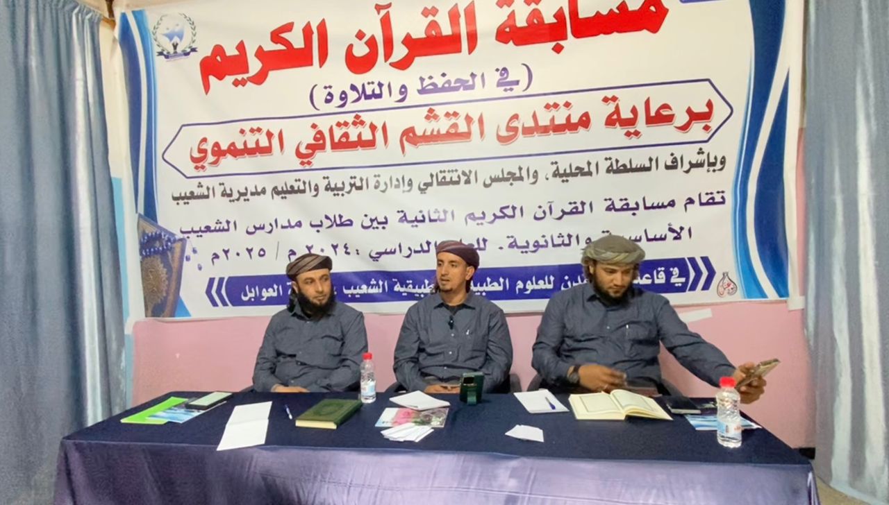 الضالع .. منتدى القشم الثقافي التنموي” يواصل مسابقات القران الكريم بالشعيب لليوم الخامس