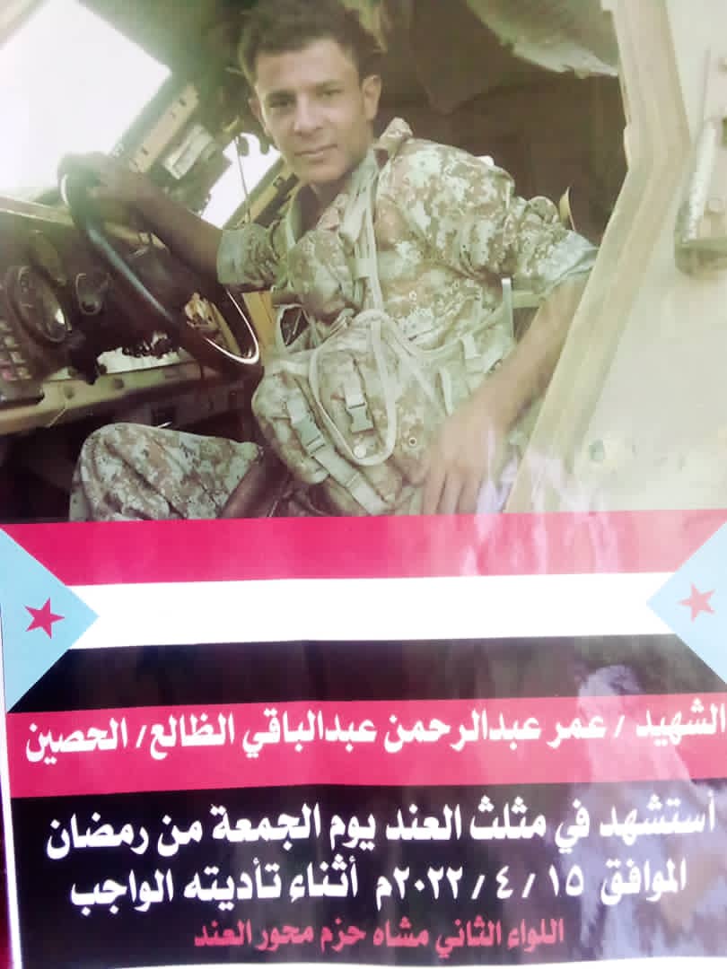 أنه الشهيد الجندي/عمر عبدالرحمن عبدالباقي مثنى موسى باعباد .