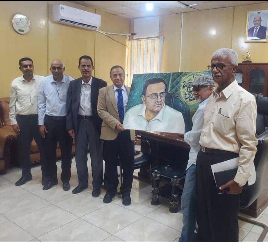 تقديرا لدوره بمساندة الصحفيين والإعلاميين .. رئيس جامعة عدن يتسلم لوحة بورترية هدية من الامين العام المساعد لنقابة الصحفيين