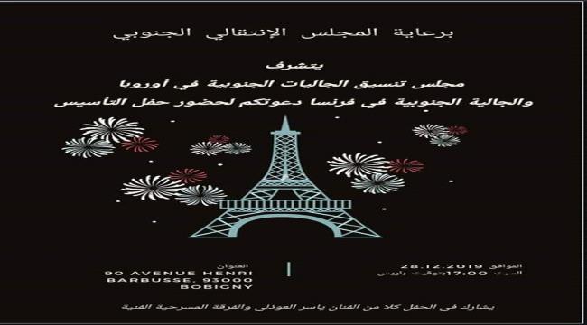 بحضور قيادات بالانتقالي.. الجالية الجنوبية بفرنسا تحتفل اليوم رسميا باشهارها