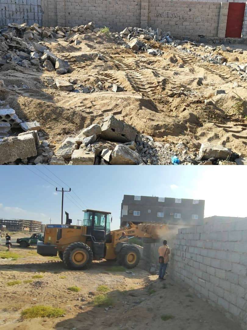 برعاية وحدة حماية الأراضي.. إزالة بناء عشوائي مخالف بمديرية البريقة بعدن
