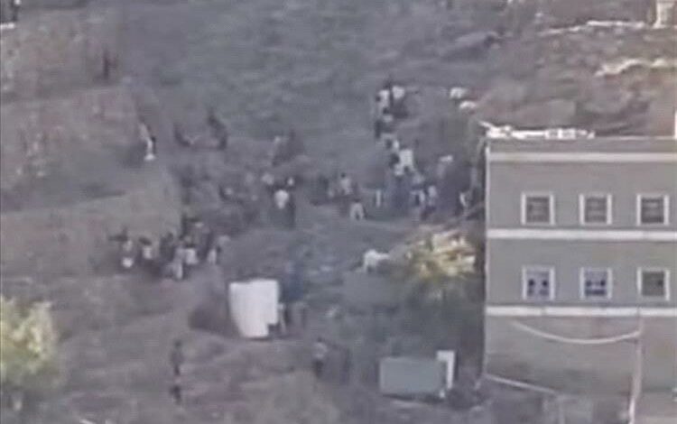 وقالت مصادر محلية إن صخرة كبيرة سقطت بعد صلاة الجمعة على منزل أحد المواطنين في منطقة تريد بمديرية يهر يافع الوسطى.