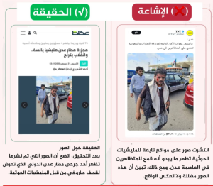 انتشرت في الآونة الأخيرة صور على مواقع تابعة للمليشيات الحوثية والاخوانية، تظهر ما يبدو أنه قمع للمتظاهرين في العاصمة عدن، في محاولة لتشويه الحقائق وإثارة الرأي العام، ومع ذلك، وبعد التحقق من مصادر موثوقة، تبين أن هذه الصور مضللة ولا تعكس الواقع.