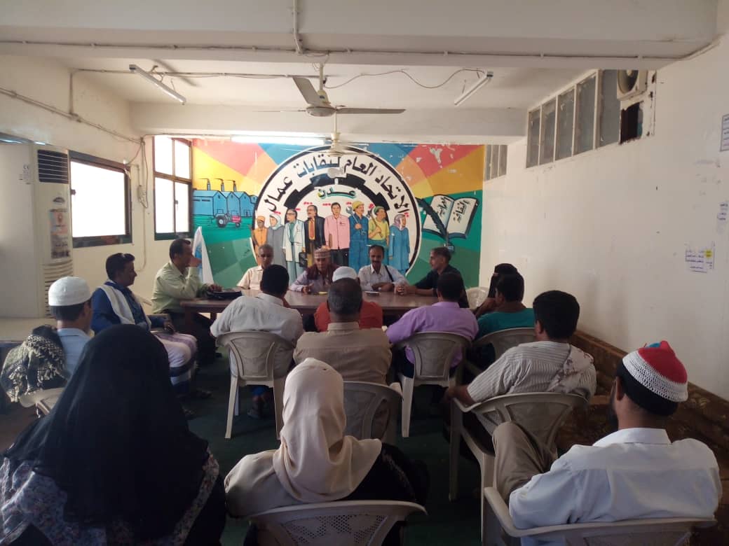 بعد اجتماع متواصل لمدة يومين تم الاتفاق عن الاضراب الشامل وخطوات تصعيدية مصحوبة مع الاضراب حيث تم الاتفاق بالاجماع الكلي عن الاضراب للقيادات النقابة العامة وقيادة عدن و رؤساء مديريات نقابة عدن وتم الاجتماع برئاسة الاستاذ قائد الجعدي وبحضور قيادات واعضاء نقابية من ردفان وأبين ويافع ولحج .*