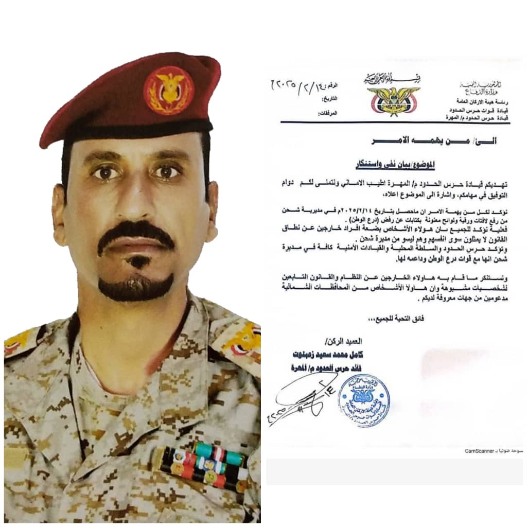 قائد حرس الحدود مع عمان يكشف ما يجري في شحن