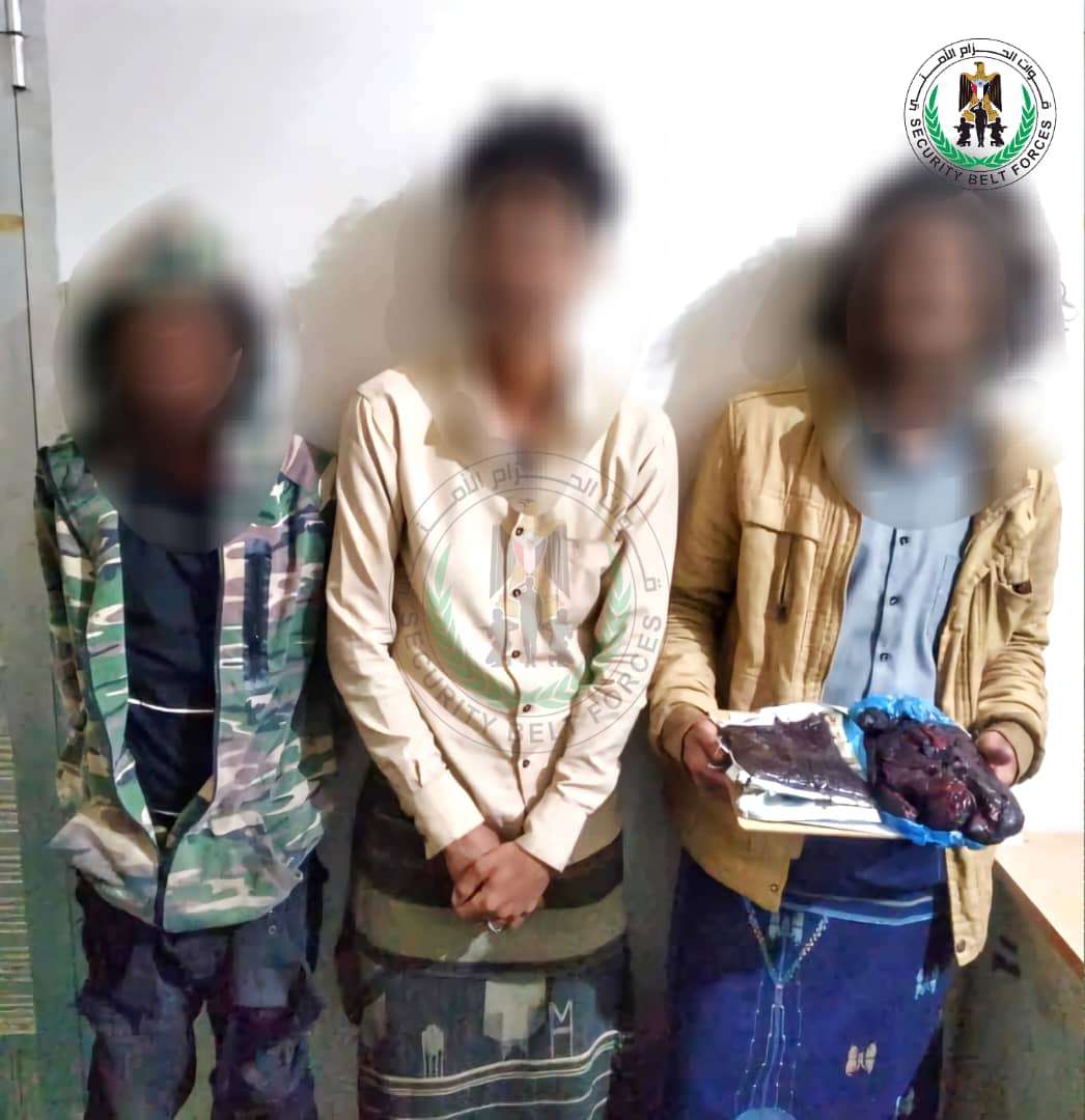 إثر حيازتهم على 1.5 كجم من الحشيش المخدر.. حزام طوق عدن يقبض على ثلاثة متهمين شرق العاصمة عدن