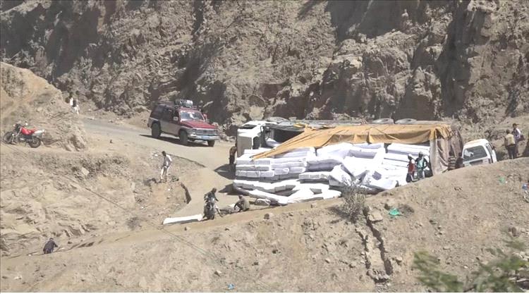 وأفادت مصادر محلية أن الشاحنة انقلبت في أحد المنعطفات بسبب الحفريات التي أعاقت تقدمها، مما أدى إلى توقف عشرات الشاحنات الأخرى بشكل اضطراري على الطريق.