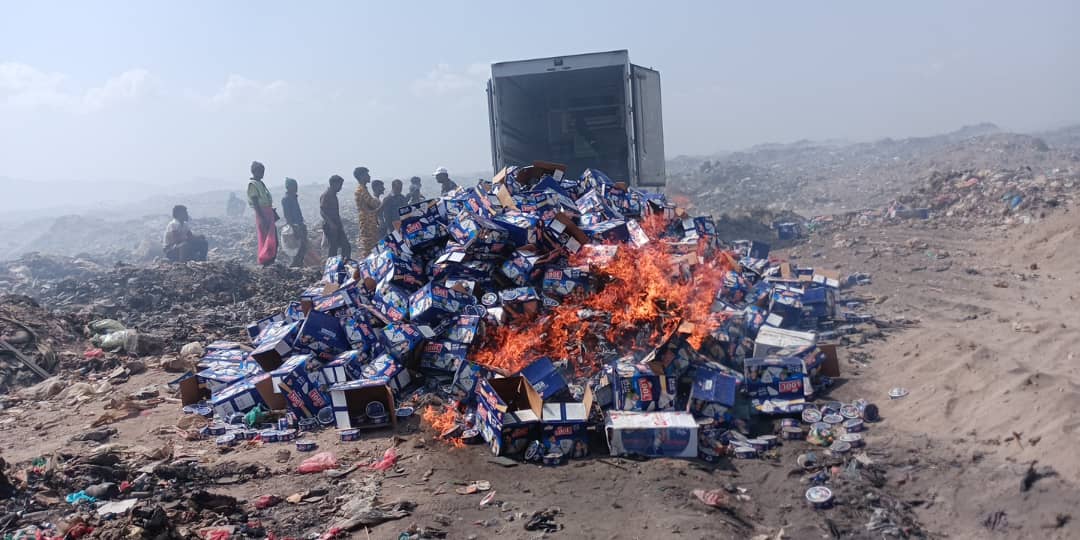 وفي وقت لاحق من هذا اليوم الأحد الموافق 23فبراير ، قامت الفرق الفنية التابعة لقسم صحة البيئة يرافقها المختصون بنقل شحنة الجبن التالفة إلى مكب النفايات في بئر النعامة مديرية البريقة ، وتم اتلافها عبر حرق الكمية كاملة والتأكد من إتلافها كاملة و بحضور اللجان المختصة.
