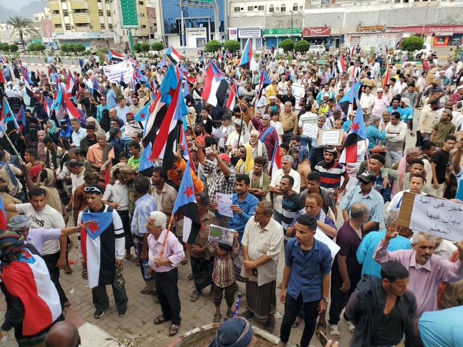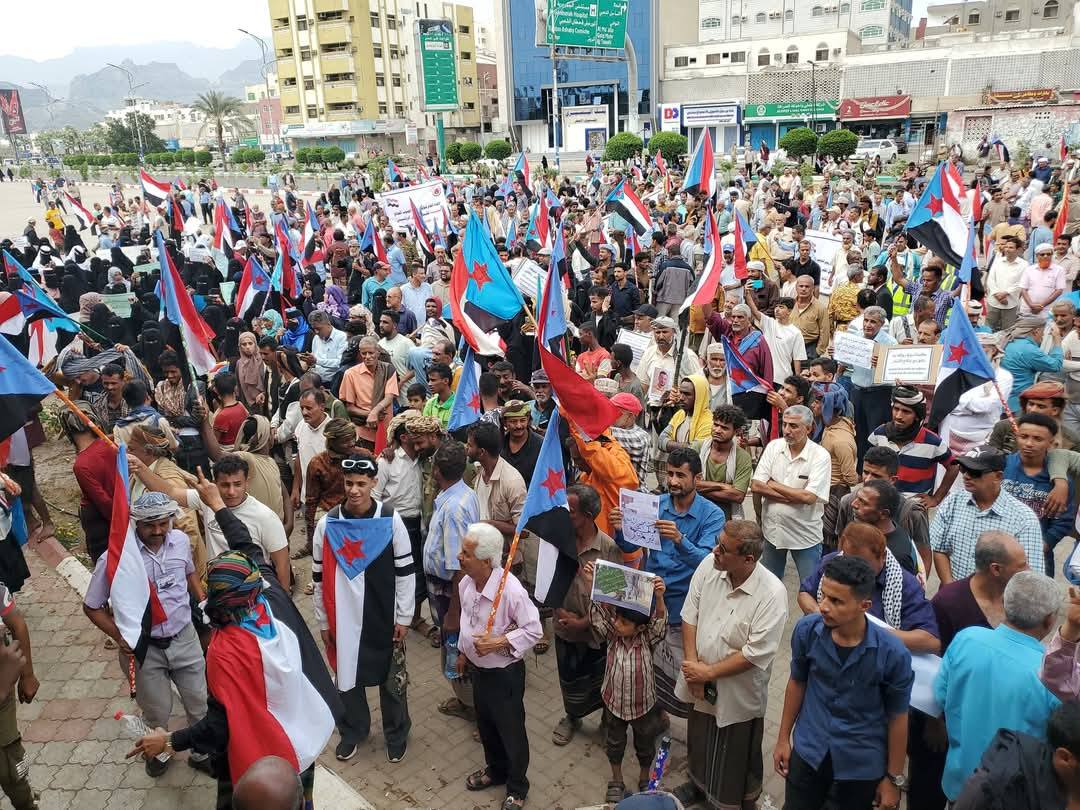 وتجمع المحتجون من مختلف مناطق عدن والمحافظات المجاورة، رافعين لافتات تطالب بالحقوق المشروعة ووقف تدهور مستوى المعيشة، في ظل الارتفاع المتسارع للأسعار وتدني الأجور.