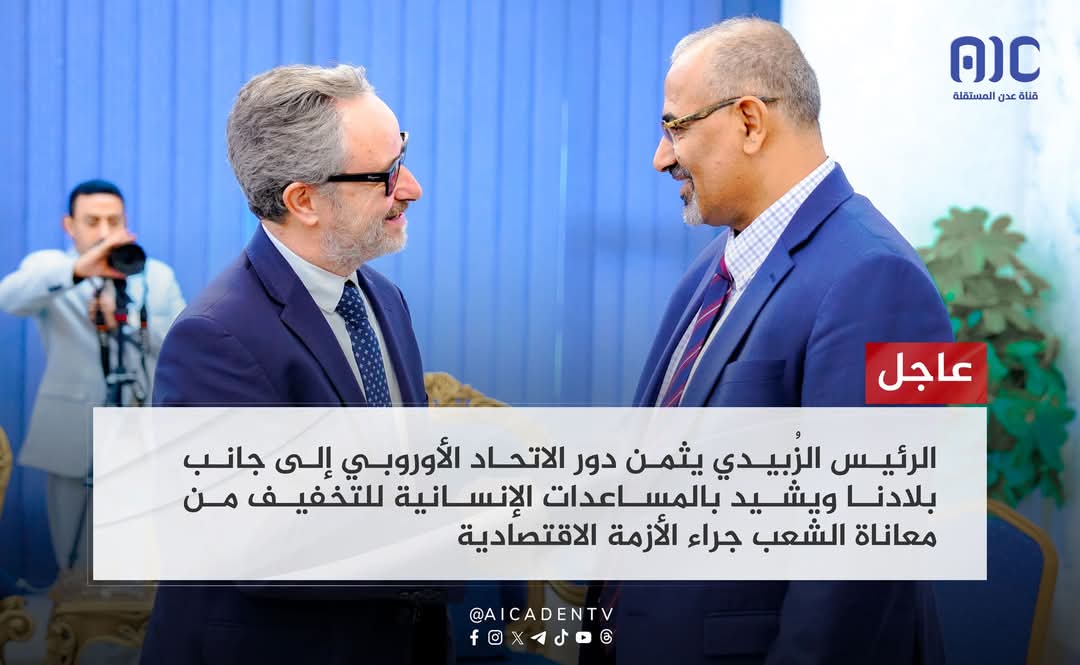 الرئيسيِة/اخبار وتقارير/ساخن/عاجل/ الرئيس الزُبيدي يثمن دور الاتحاد الأوروبي إلى جانب بلادنا ويشيد بالمساعدات الإنسانية للتخفيف من معاناة الشعب جراء الأزمة الاقتصادية عاجل/ الرئيس الزُبيدي يثمن دور الاتحاد الأوروبي إلى جانب بلادنا ويشيد بالمساعدات الإنسانية للتخفيف من معاناة الشعب جراء الأزمة الاقتصادية صحيفة النقابي الجنوبي./آخر تحديث: 25 فبراير، 2025 صحيفة النقابي الجنوبي./آخر تحديث: 25 فبراير، 2025