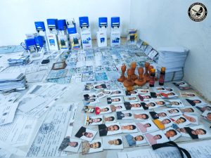 واثناء عملية تفتيش الموقع، عُثر بحوزة أفراد الشبكة على كميات كبيرة من البطائق العسكرية والمدنية المزورة بأسماء شخصيات مختلفة، إضافة إلى تصاريح مرور مزورة باسم جهات عسكرية وأمنية وألوية واجهزة امنية ، وجوازات سفر مزورة، ولوحات معدنية للسيارات، وبيانات جمركية وشهادات جامعية مزيفة، إلى جانب معدات متطورة لتزوير الوثائق، مثل طابعات حديثة، وأجهزة كمبيوتر محمولة ومكتبية ، كما عُثر على كتب شعوذة وسحر، ما يشير إلى استخدامهم أساليب غير مشروعة في عملياتهم الإجرامية.