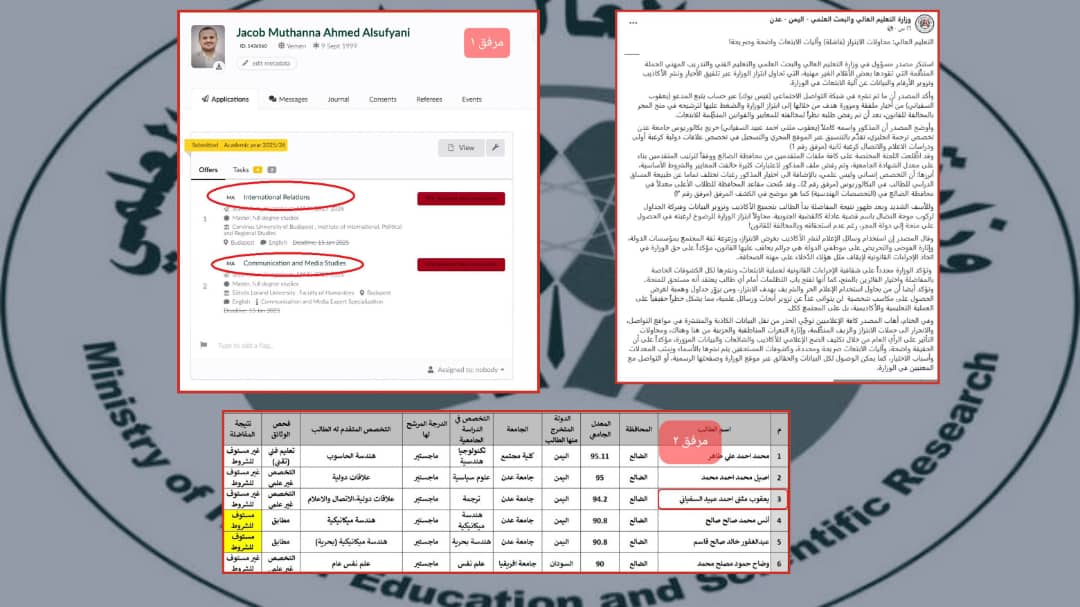 أنا الصحفي/ يعقوب مثنى أحمد عبيد السفياني، أتقدم إليكم بهذه الشكوى بصفتي المتضرر مما تعرضت له من تحريض وتهديد و تشهير صادر عن وزارة التعليم العالي ، وذلك على خلفية نشري لمعلومات تتعلق بآلية الابتعاث الحكومي وانتقادي لممارسات الوزارة في هذا الشأن، وهو ما أدى إلى إصدار الوزارة بيانًا رسميًا يتضمن عبارات تحريضية وتشهيرية بحقي، في انتهاكٍ صارخٍ للقوانين الوطنية والدولية التي تكفل حرية الصحافة وحماية الصحفيين من أي تهديد أو اعتداء بسبب عملهم.