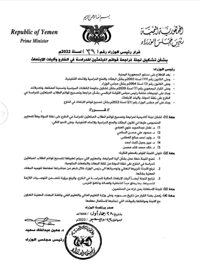 3. الكشف عن تفاصيل الأرباع والمساعدات المالية المقدمة للطلاب المبتعثين خلال الأعوام الأخيرة، وبيان الجهات التي حصلت عليها، والفوارق بين الطلاب أبناء الشمال والجنوبيين، وضمان عدم وجود أي فساد مالي أو تمييز في توزيع هذه المستحقات.