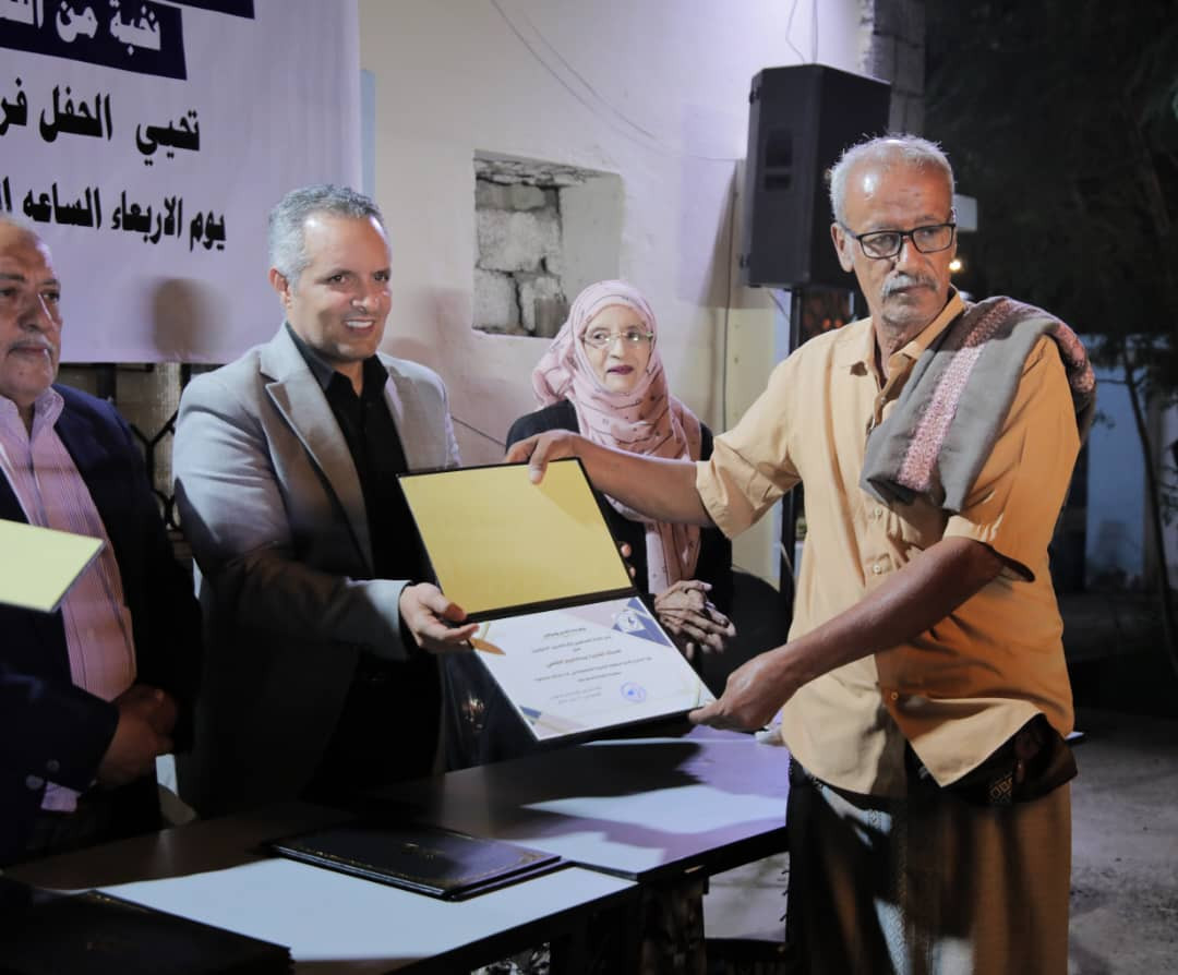 وجرى في الحفل توزيع الشهادات التقديرية لعدد من النخب الإعلامية والصحفية والكتاب في العاصمة عدن.