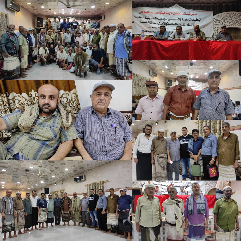 عقد مساء الخميس الموافق 13/3/2025م الاجتماع التأسيسي لإشهار الجمعية التعاونية السكنية لأبناء القوات المسلحة والأمن في العاصمة عدن بإشراف مكتب الشؤون الاجتماعية والعمل